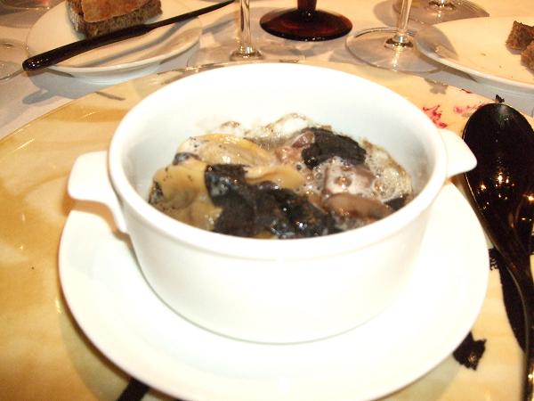 (foie gras terrine coated in black truffle and black truffle gelatin) 鹅肝裹黑松露胶,秀色可餐,浓郁的黑松露在口中溶化,鹅肝也没有一点腻味。