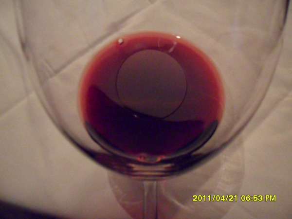 当天气温22C º左右,去塞瓶醒十五分钟配餐使用,使用普通波尔多玻璃杯。