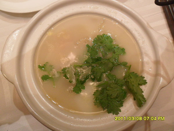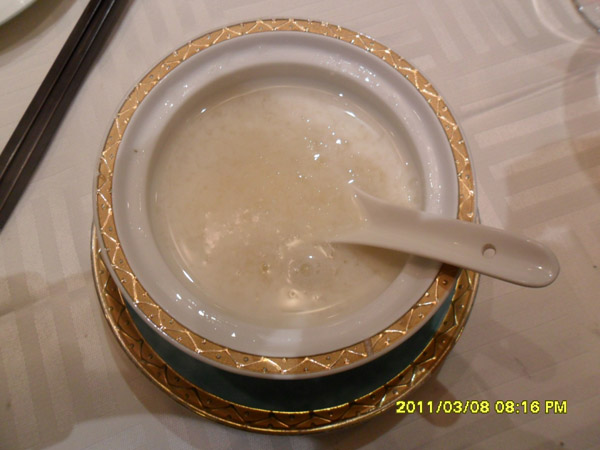 翅羹:头汤推芡烩滚淋熟翅鸡丝而成,单饮不配酒。