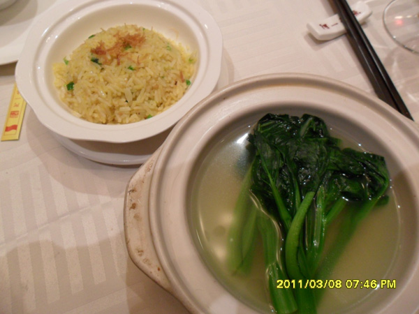 主食二汤浸菜芯、炒饭:单食不配酒。