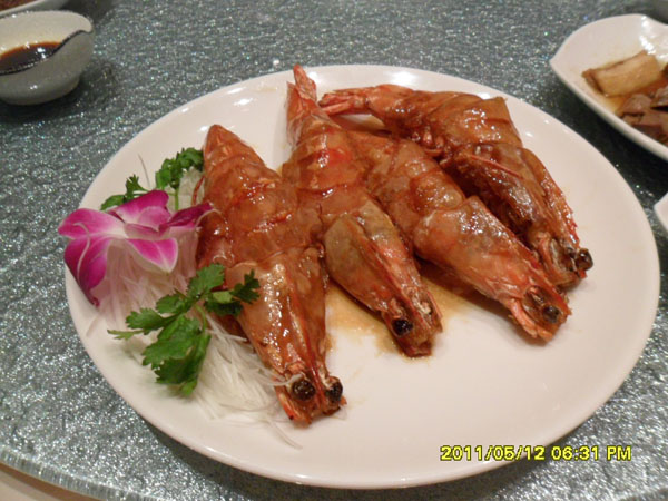 干煎大虾:虾蟹味鲜清谈不配重体干红。