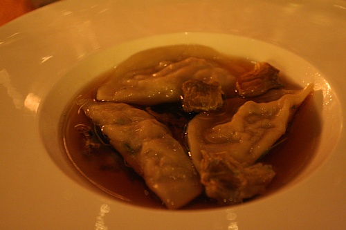快速decant后落杯,老酒散发的松露、皮革香扑鼻而来,几分钟后转化为幽雅的梅子、清凉的尤加利树叶,入口仍旧有力的结构,酒味由泥土香气滋味主导,渗透着丝丝果甜及柔美酸度,除了单宁退化稍弱可整体依旧充满阳光雨露,依然还在适饮期。岁月的痕迹化在杯中,这支酒为Frank的年份干杯!配餐是鸭腿牛肝菌意式饺子,法餐馆混搭做的意式饺子,伴随着非常突出的鸭肉香。