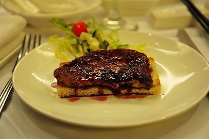 色香味俱全,可圈可点,倘若佐以清新、高酸的长相思白酒相信效果会绝佳。当晚无酒以配,却属无奈和应景之选。
