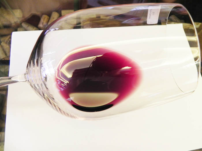 尽管尚未醒酒,此酒入杯即绽放出醉人的舞姿,激荡中黑玫瑰色的亮丽酒体中透出紫罗兰色调和橘黄色的酒缘,在光线的折射下表现出芳醇的活力和劲道,是款年轻稳重的佳酿。