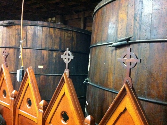 最后一家的干白和干红有一股特别的像酵母似的不纯净的香气,虽然摇杯迅速消失。这家是以酿port,tawny等又名的,看走进试酒室旁边的一个个大木桶。