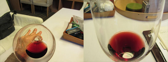 威尼托赤霞珠Cabernet delle Venezie 2009(IGT)。红宝石色,较之刚才喝的那些红酒,色泽算是比较深浓的了。闻杯有烟丝味,但且慢,竟然有人在室内抽烟!做这么大刹风景的事,真想揍他一顿;但是对方牛高马大,揍他一顿,我还惹了一身麻烦。为了不做那种吃了饼干后觉得酒里有饼干味的事,那就等等咧,跟mm天南地北地聊天。过了很长一段时间,抽烟的男人走了,室内的烟味也消失殆尽了。mm拿起酒杯一闻,说:“有烟味。”