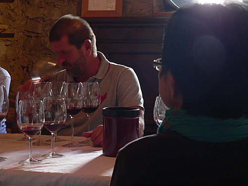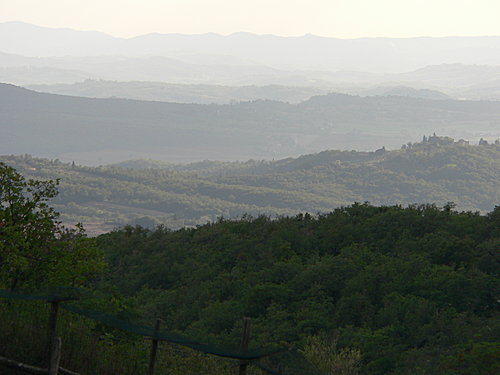 去过 Tuscany 山区的人都不会忘记那里的山有多漂亮。小时候常听英国人描述 Tuscany 的山为 rolling hills,这次亲临其境,令我们每天都看得陶醉。Nicolas Belfrage 说 Sangiovese 的最理想生长高度是 Chianti 和 Montalcino 从 250 到 500 公尺的山地,Tuscany 的山美在其有节奏的滚动。在我面前的 Carlo 的朗诵就像我们这两个星期听到的多首歌曲一样,是充满韵律的,是有节奏地在 250 到 500 公尺的群山之间滑动的乐声,温柔多于雄壮,既没有南部西西里人说话的激昂(他们有近千公尺的火山),也没有北部 Bologna 人的吴侬软语式的低沉(Romagna 是个大平原)。一句话﹕在 Tuscany,一切都来得中庸,很中国。