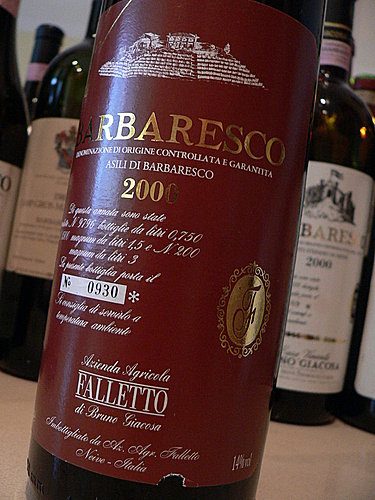 从1982年到2004年的21年间,先后有17年出产两个葡萄园的 Barolo ,其中 9 年是 Red label Riserva 。找不到 Rionda ,只好找 Falletto 了。