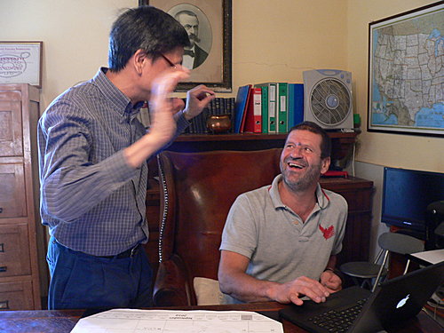 我听 Florio Guerrini 讲了好几个小时,凭着 Gioia 很努力的翻译,细节或者有遗漏,但大意我还是听得明白的。幸好我已经习惯了把意大利文当歌曲来听,更难得的是,Florio 讲话是充满激情的,除了好听更好看,他的手舞足蹈的动作活像大指挥 Toscanini。